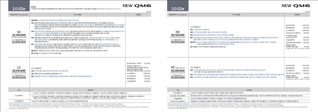 뉴 QM6 가격 및 제원 가격표