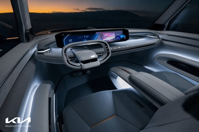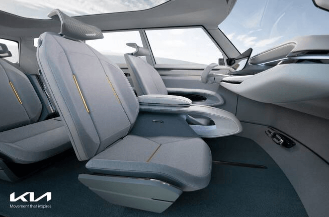전반적인 디자인은 ev6 전기차 플랫폼을 기반으로 한 기아의 디자인 철학 오퍼짓 유나이티드 컨셉을 가져왔습니다. 주행 및 정차 상황에 따라 시트 방향을 바꿀 수 있는 3개의 실내 모드, 자연의 요소에서 영감을 받은 색상과 지속가능한 자원을 활용한 소재가 특징입니다.