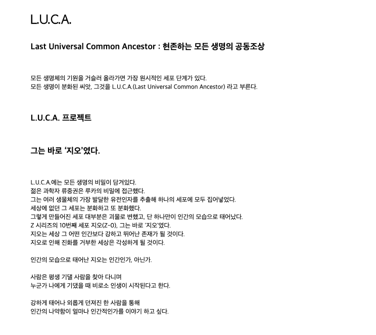 루카 더 비기닝 간랸한 줄거리는 모든 생명체의 비밀을 연구하던 과학자 류중권이 가장 발달한 유전인자를 추출해 하나의 세포에 모두집어넣고 이렇게 탄생한게 바로 지오 배우 김래원입니다. 세상을 바꿀 능력을 숨긴채 쫓기게 되는 지오(김래원)와 형사역의 하늘에구름(이다해)가 거대한 음모를 파혜치는 스토리입니다.