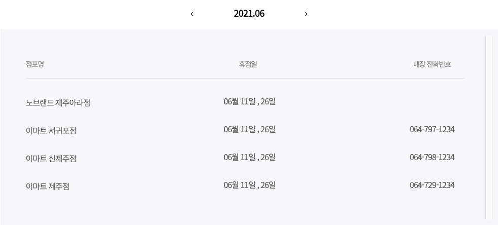 제주지역 이마트 휴무일