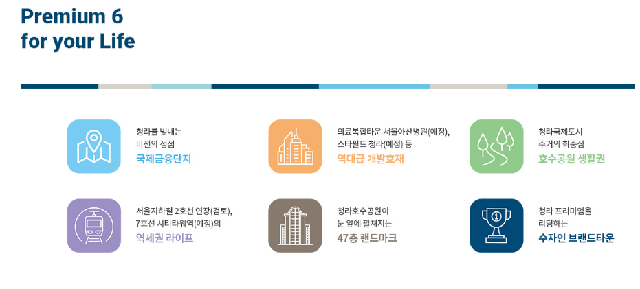 청라 한양수자인 디에스틴 장점으로는 국제금융단지, 의료복합타운 서울아산병원(예정), 호수공원 생활권, 7호선 시티타워역 역세권, 청라호수공원이 펼쳐지는 47층 랜드마크 등 향후 충분한 가치상승이 될 것으로 보입니다.