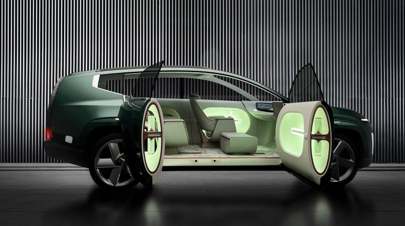 차량 크기는 대형 suv 포지션인 현대 펠리세이드와 캐딜락 에스컬레이드 정도가 될 것으로 예상되며 실내 휠베이스는 동급 세그먼트 최대 수준인 3.2m라고 밝혔습니다. 본격적인 제원을 살펴보면 기존 현대 전기차에 들어가는 배터리보다 업그레이드된 100kWh 배터리와 듀얼 모터로 313마력을 힘을 자랑하며, 1회 완충시 483km(300마일) 주행거리를 확보했습니다. 아울러 차량 외부로 일반 전원을 공급하는 V2L 기능이 탑재되어 다양한 외부환경에서 전자기기를 제약 없이 사용할 수 있습니다.