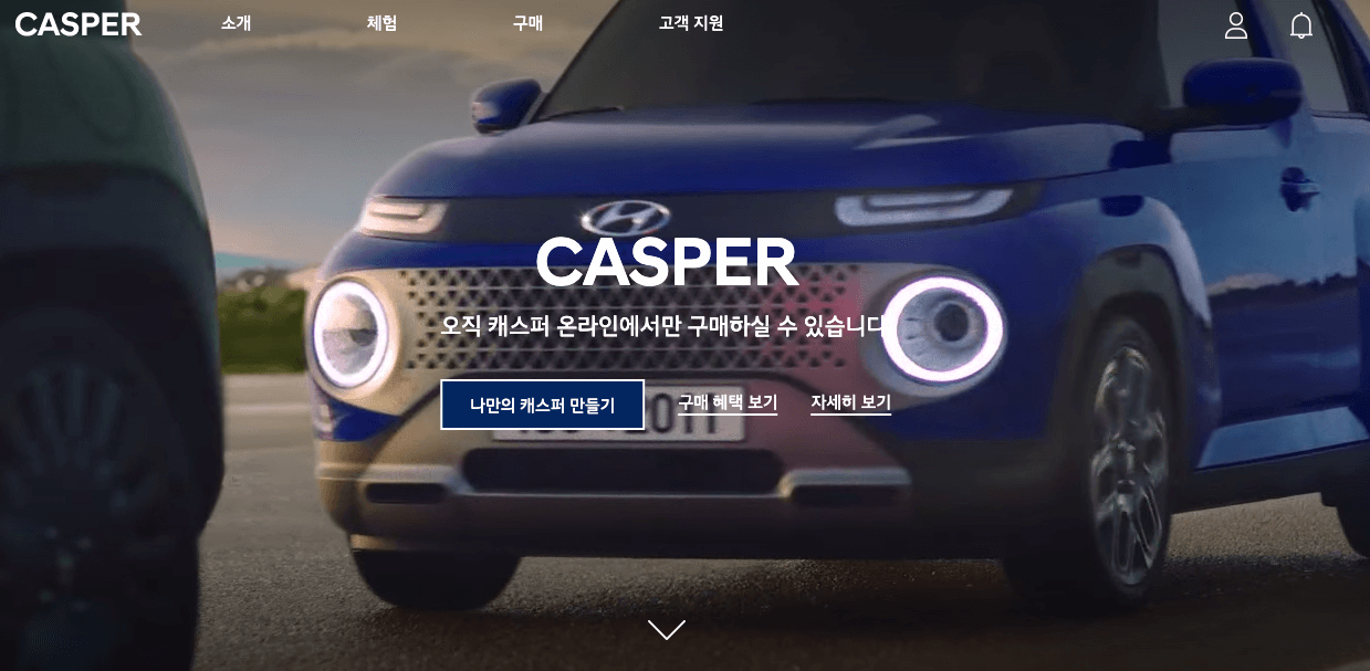 현대자동차는 소형suv 캐스퍼를 온라인 홈페이지를 통해서만 구매가능하도록 진행 중입니다.