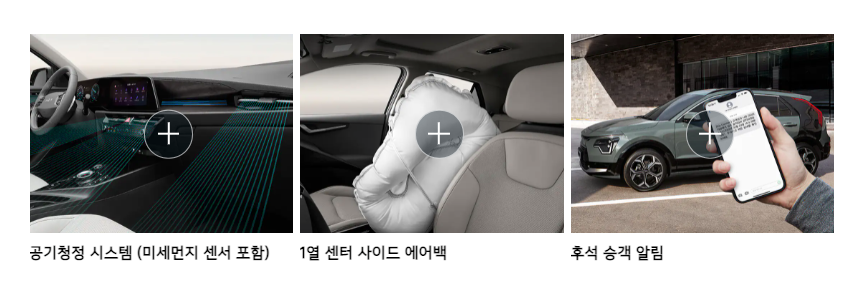 편의사양 옵션으로는 고급 차량에 많이 적용되는 전자식 변속 다이얼(SBW)과 헤드 업 디스플레이가 탑재되고, 전자식 파킹 브레이크, 스마트폰 무선충전 시스템, 오토홀드, 엠비언트 라이트, C필러 에어커튼홀 옵션, 패들 쉬프트(회생제동 컨트롤 포함), 친환경 페인트 윈도우 스위치 판넬, 바이오 인조가죽시트, 스마트 파워 테일게이트, 동승석 릴렉션 컴포트 시트, 2열 리클라이닝 시트, 공기청정 시스템, 후석 승객 알림, 하만/카돈 프리미엄 사운드 등 편의사양 옵션이 대거 장착 되었습니다. 더불어 고속도로 주행보조, 원격 스마트 주차 보조, 안전 하차 보조, 후측방 충돌방지 보조, 후방 교차 충돌방지 보조장치 등등 안전주행 보조장치들도 함께 탑재 되어 2023 신형 니로 하이브리드 판매 인기를 알 수 있는 요소들입니다.