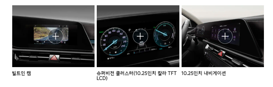 실내 디자인은 고급 차량에 적용되는 편의사양 옵션이 대거 장착 된 것이 가장 큰 특징으로 볼 수 있습니다. 10.25인치 파노라마 디스플레이를 시작으로 헤드 업 디스플레이, 인포테인먼트 공조 전환 장치, 전자식 변속 다이얼, 패들 시프트, PET 리사이클링 소재 헤드라이닝, 친환경 페인트 윈도우 스위치 판넬, 바이오 인조가죽시트, 1열 센터 사이드 에어백(국내 최초) 등등 편의 및 안전사양 옵션이 대거 장착 되었습니다.